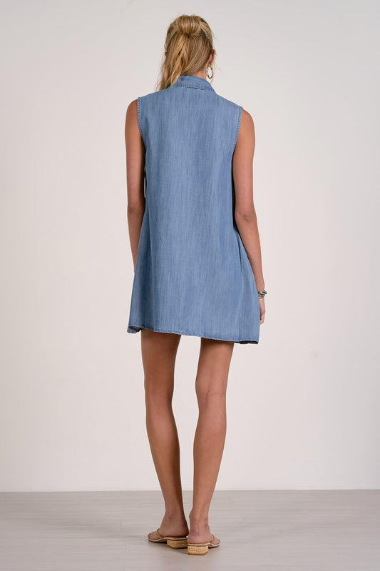 Sleeveless Button Down Mini Dress - Blue Denim