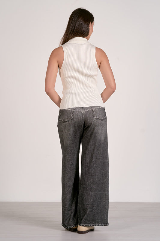 Ribbed Tank Top with Contrast Trim - Grey and White