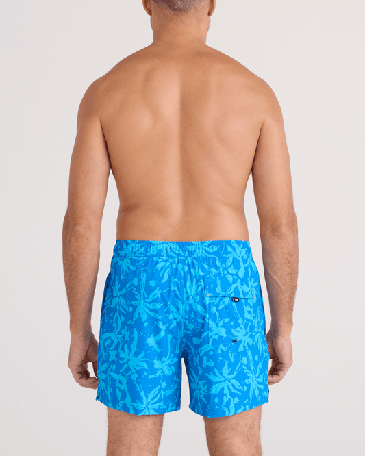 Oh Buoy 5" Swim Shorts with Compression Liner - Splash Palms (Bold Blue)
