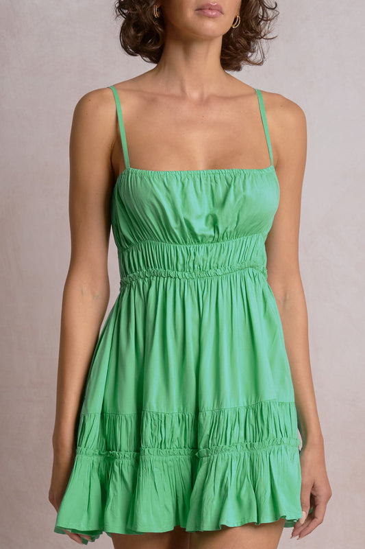 Spaghetti Strap Mini Dress - Neutral Bali Print