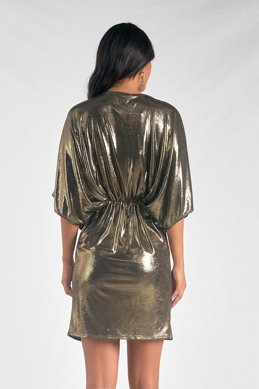 3/4 Sleeve V-Neck Mini Dress - Napa Natural