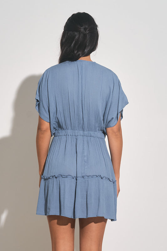 V-Neck Ruffle Bottom Mini Dress - Deep Blue