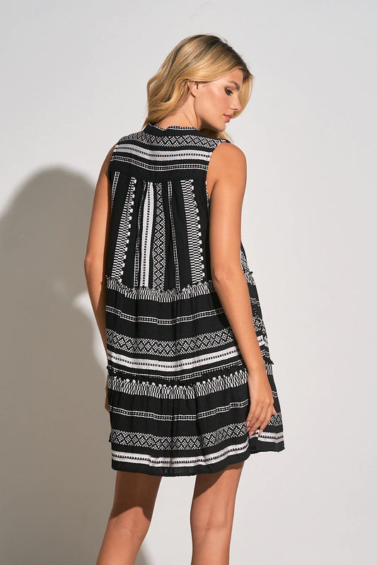 Short Sleeve Eyelet Mini Coverup Dress - Black