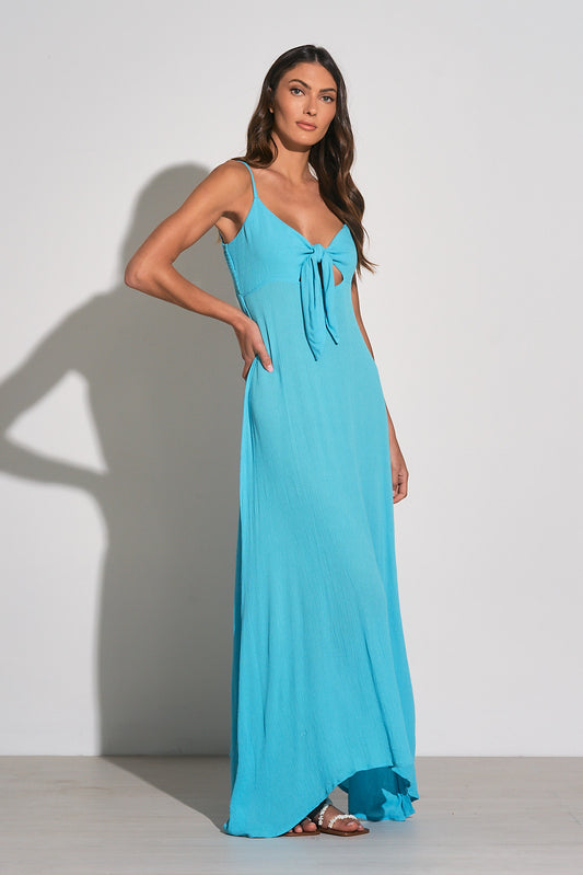 Spaghetti Strap Tie Front Maxi Dress - Aqua