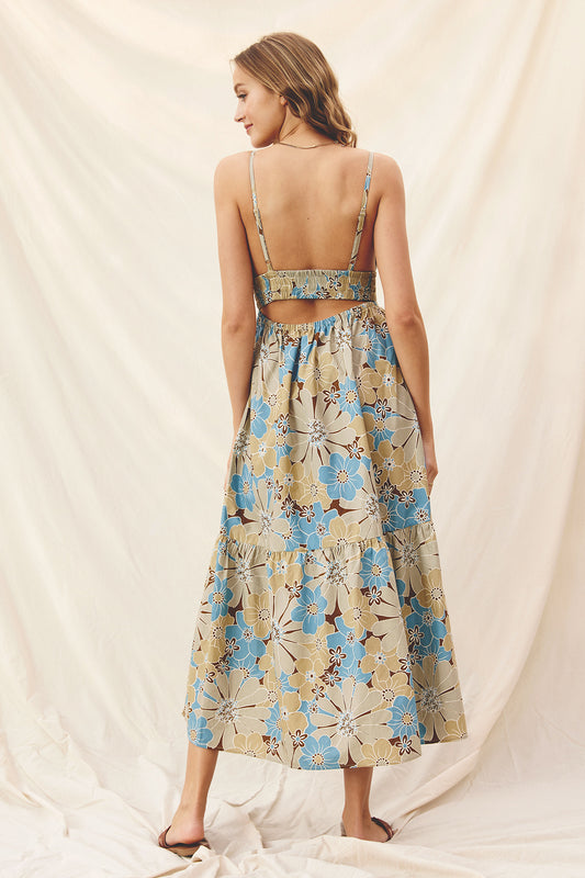 Lily Pad Cutout Detail Maxi Dress - Taupe/Blue Floral