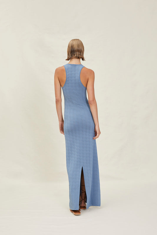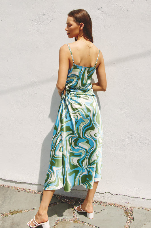 Summer Breeze Ruched Side Cutout Maxi Dress - Coastal Breeze