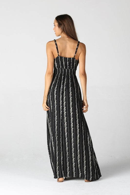 V-Neck Tie Back Maxi Dress - Black Barbado
