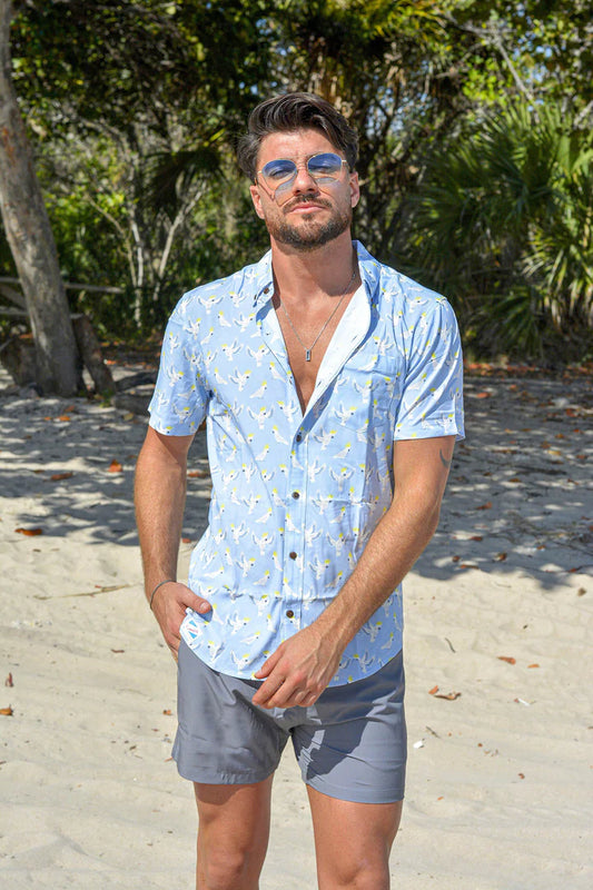 Rayon Stretch Short Sleeve Button-Down Shirt - Cockatoo