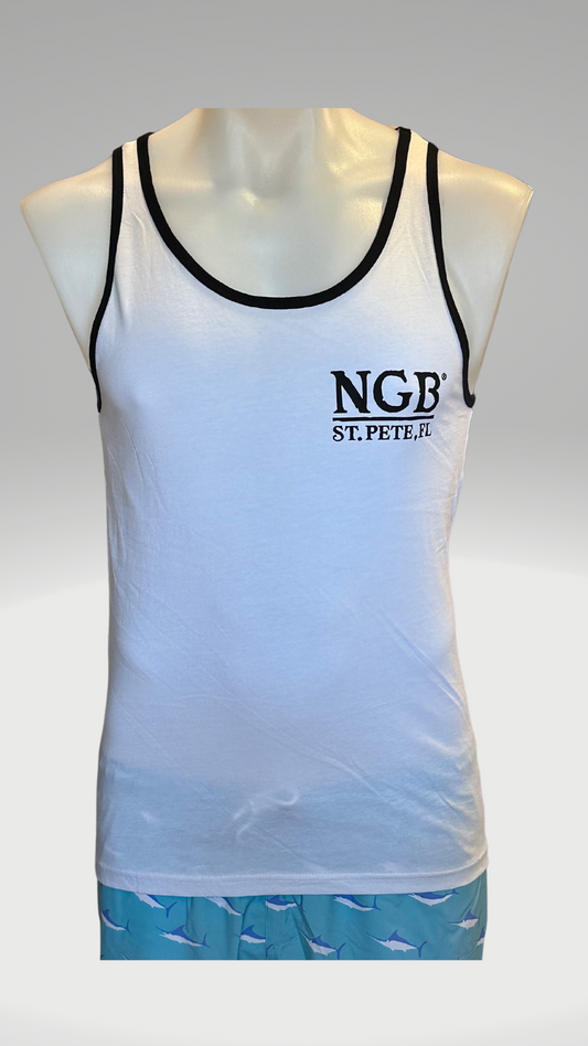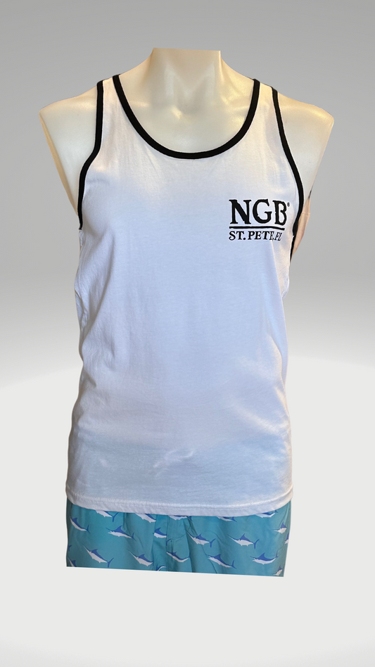 Men's Tank Top - White with Black Trim - Black St. Pete Pelican