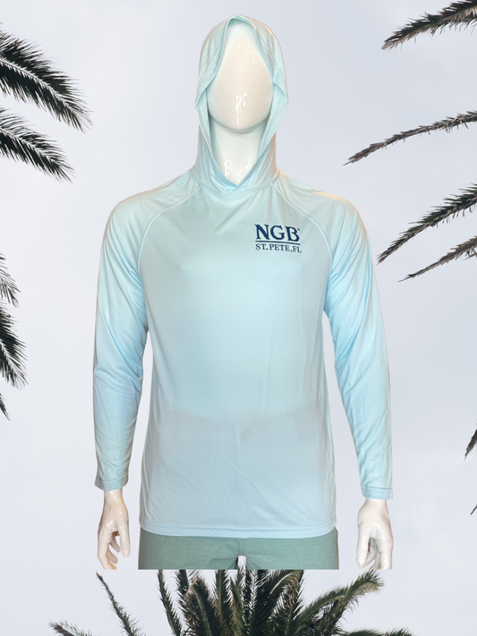 Long Sleeve UPF Sun Shirt with Hood - Pastel Blue - Blue St. Pete Pelican