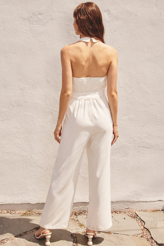 Halter Collared Sleeveless Jumpsuit - Ivory