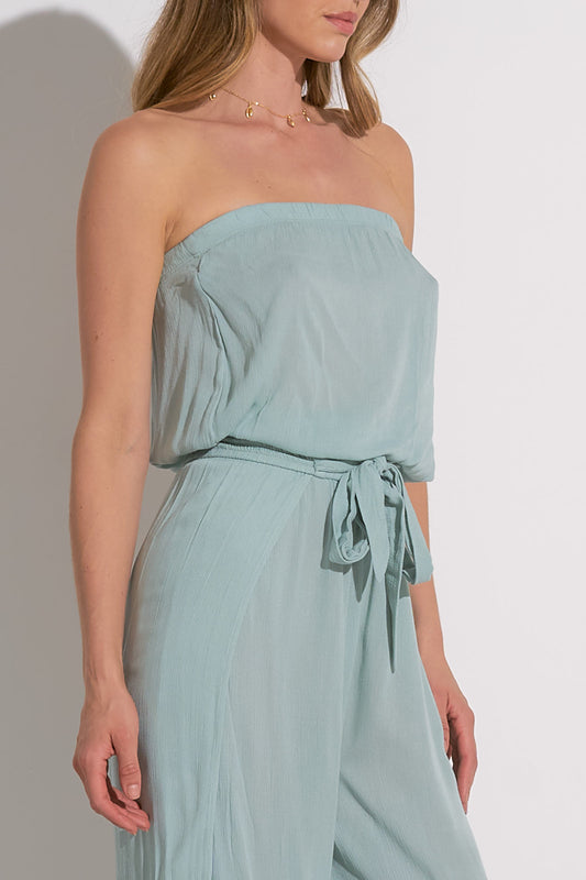 Strapless Crepe-Leg Jumpsuit - Light Teal