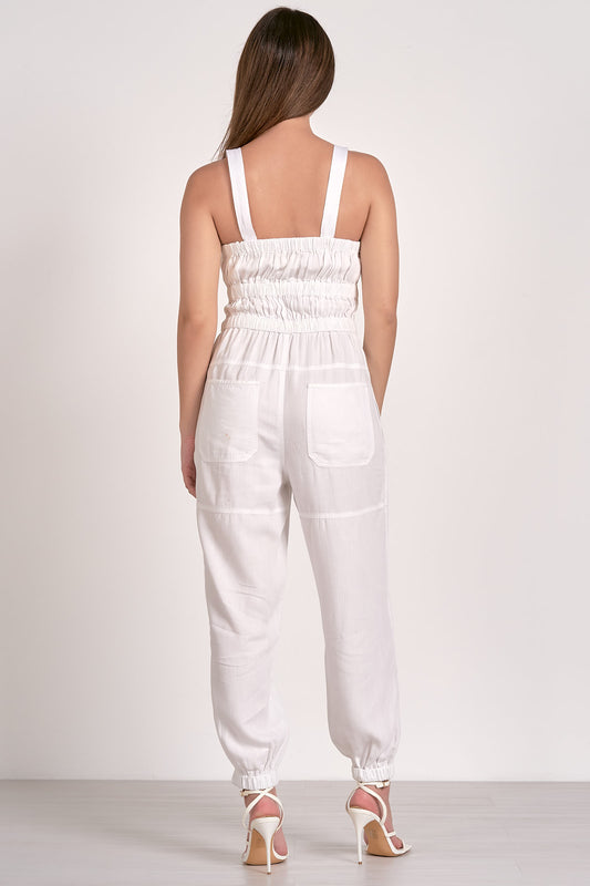Spaghetti Strap Jumpsuit with Smocked Top - Coral Rio