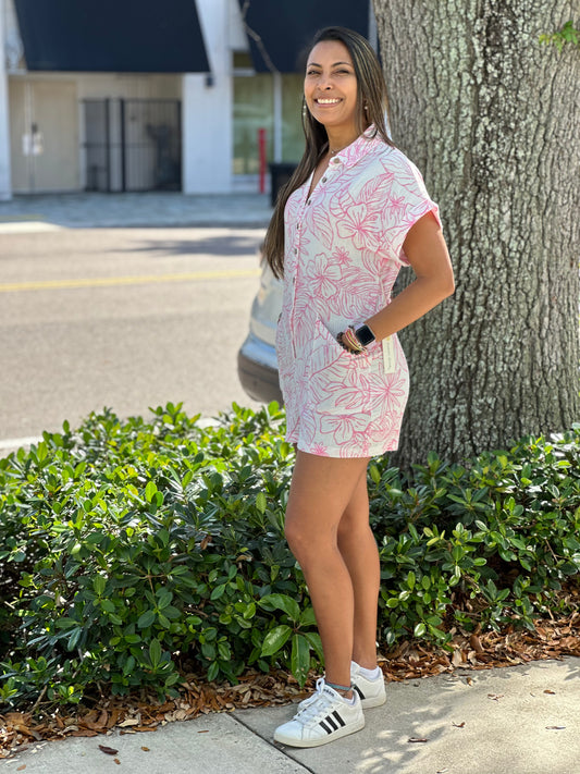 Short Sleeve Button-Down Romper with Collar - Taupe