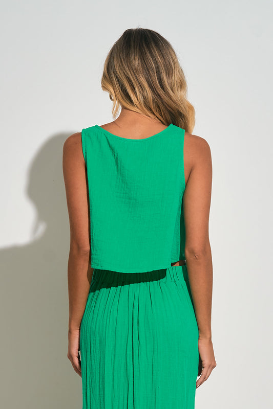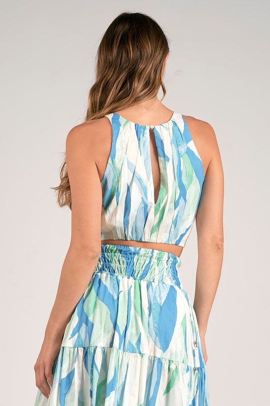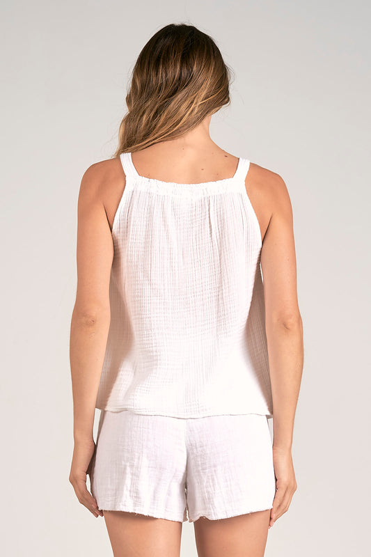 Sleeveless High-Neck Tank Top - Off White/Aqua