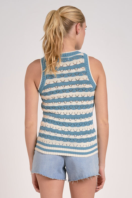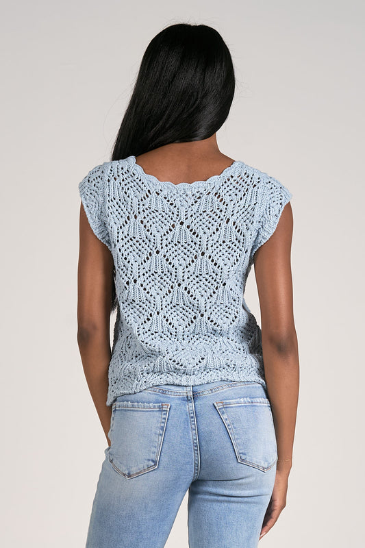 Cap Sleeve Crochet Sweater Tank Top - Blue