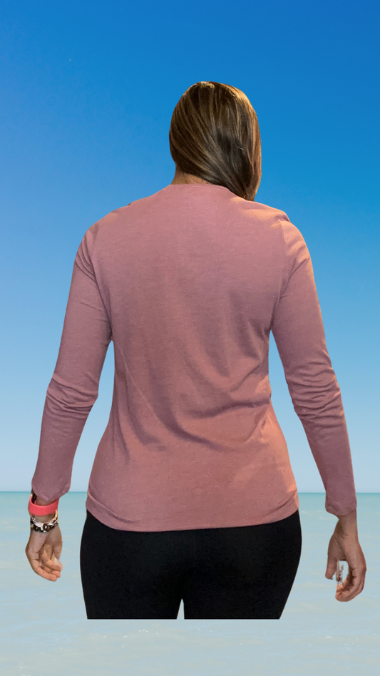 Women's Long Sleeve T-Shirt - Mauve - Kaia Logo (Front) - Blue Text