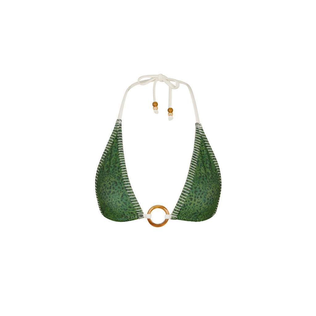 This halter bikini top takes a modern and sophisticated twist on the classic halter design, featuring an eye-catching centre O ring detail. It's simple yet flattering triangle fit is perfect for those who want a staple bikini for all occasions! Ideal for those who like to feel secure but also enjoy a minimal look.